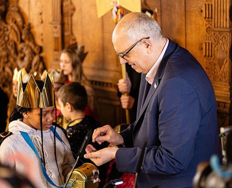 Für Bremens Bürgermeister Andreas Bovenschulte ist es jedes Mal einer seiner schönsten Termine, wie er selbst sagt: der Empfang der Sternsinger. An diesem Montag kamen fast 100 als Heilige drei Könige verkleidete Kinder, mit Kronen, Turbanen und Sternen. Mit ihnen sang der Bürgermeister das Lied „Wir kommen daher aus dem Morgenland“.