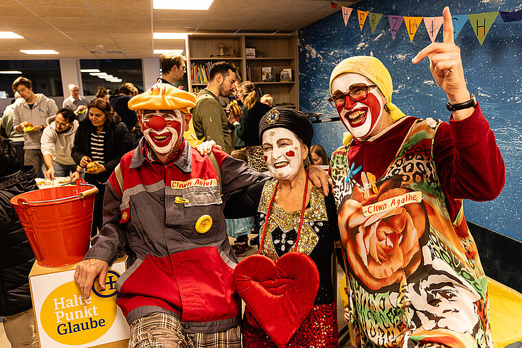 Die Clowns (von links) Anjol, Paula und Agathe trugen zur guten Laune bei.