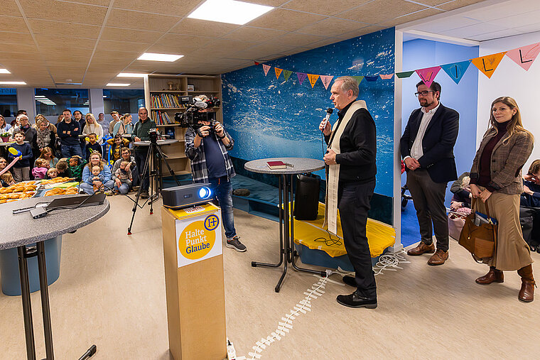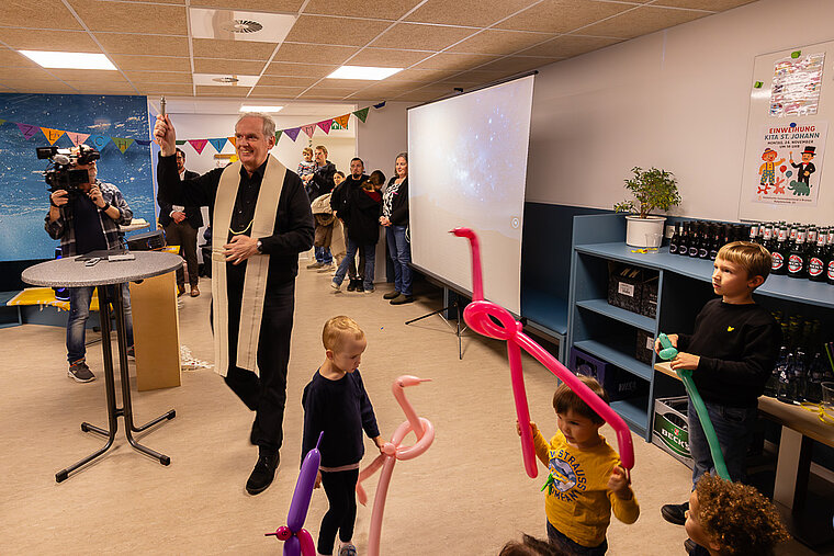 Die Kita liegt in direkter Nähe zur Propsteikirche St. Johann im Schnoor-Viertel. Sie bietet neben der bisherigen Betreuung von Kindern im Alter von drei bis sechs Jahren nun zusätzlich 20 neue Krippenplätze. „Wir haben nicht nur räumlich, sondern auch pädagogisch ordentlich aufgestockt“, sagte Christopher Peiler, Geschäftsführer des Katholischen Gemeindeverbands Bremen, bei der Eröffnungsfeier.