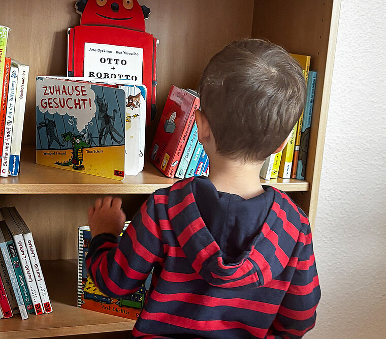 In einer Kinderbibliothek können sich alle Kinder einmal in der Woche Bücher ausleihen. Vorlese-Paten – angehende Erzieherinnen und Erzieher sowie Eltern – kommen in die Kita und lesen den Kindern in verschiedenen Sprachen vor. Darüber hinaus finden Eltern-Kind-Nachmittage zum Projekt Bücherkita und Buchausstellungen statt.
