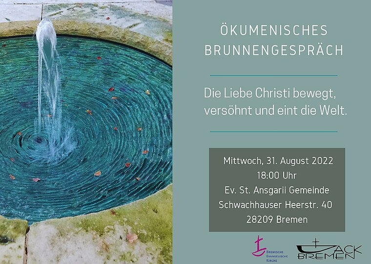 Die Arbeitsgemeinschaft christlicher Kirchen in Bremen und die Bremische Evangelische Kirche laden für den 31. August um 18 Uhr ein zum Ökumenischen Brunnengespräch.