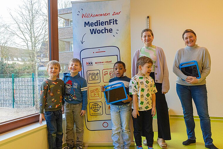 Die Bildungsreferentinnen Stefanie Wulf und Malin Gloistein haben die „MedienFit-Woche“ in der Kita St. Georg geleitet. Sie umfasste drei Projekttage mit jeweils drei Stunden. Die Bildungsreferentinnen sehen Medienpädagogik als Querschnittsaufgabe an, sie zeigen kreative Apps und wollen auch die Hemmschwelle für ältere pädagogische Fachkräfte senken. Dank der Unterstützung der hkk Krankenkasse war das Projekt kostenlos.